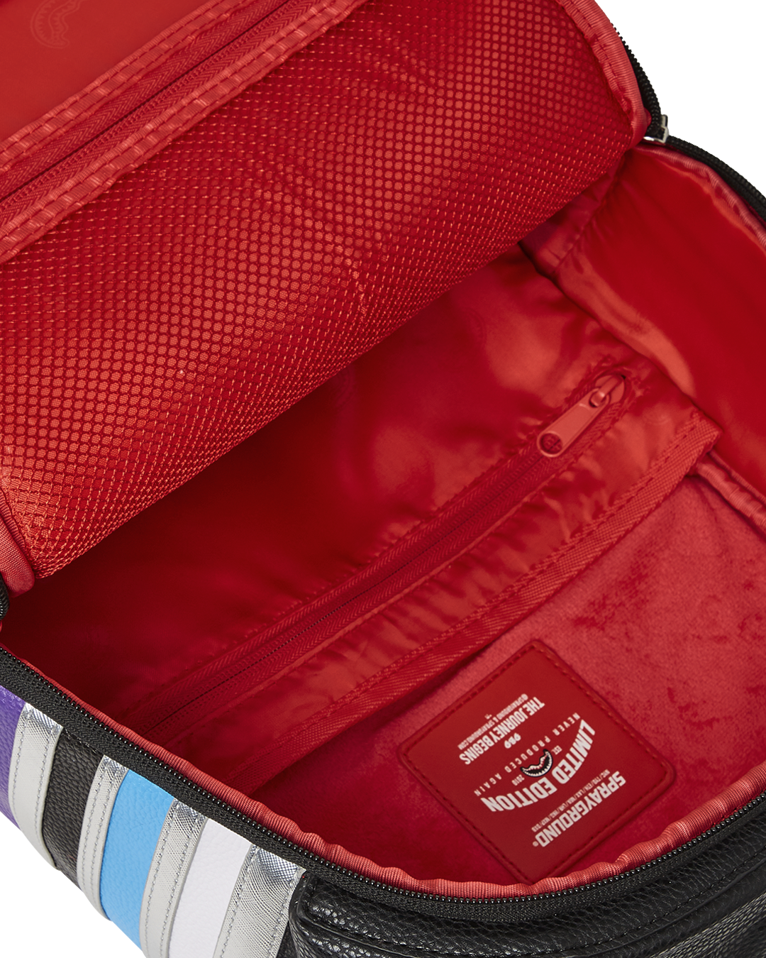 Dimensions: 18″ x 6″ x 11.5″ ? Front zipper pocket ? Side pockets ? Zippered Stash pocket ? Separate velour sunglass compartment ? Ergonomic mesh back padding ? Adjustable Straps for custom sizing ? Gold zippers with metal hardware ? Metal “Sprayground Authentic” badge ? Slide through back sleeve connects to carry-on luggage to free your hands