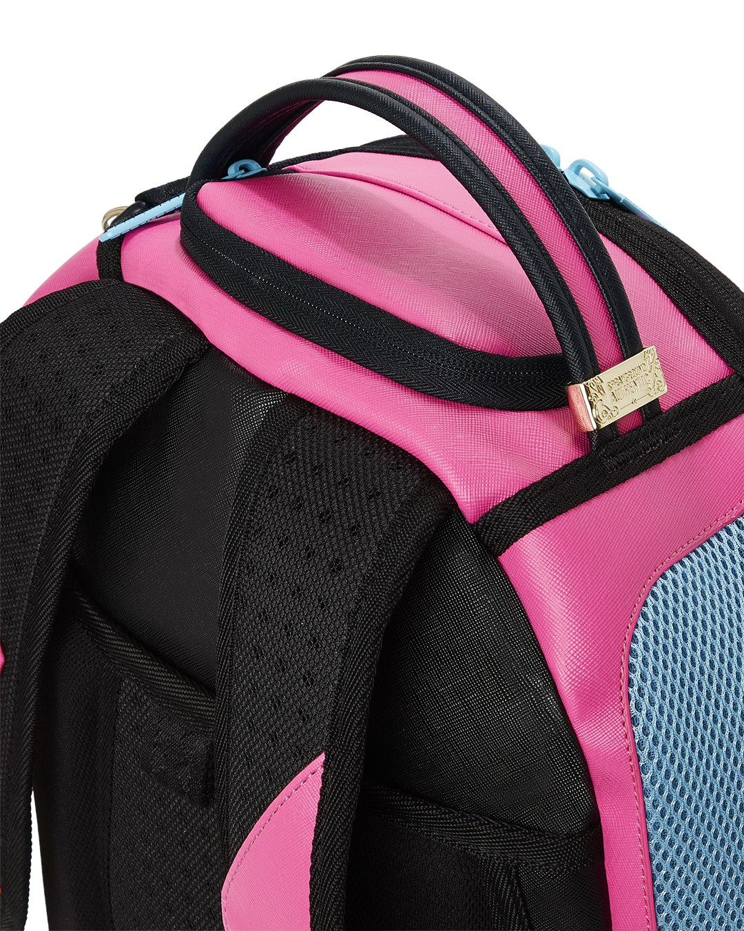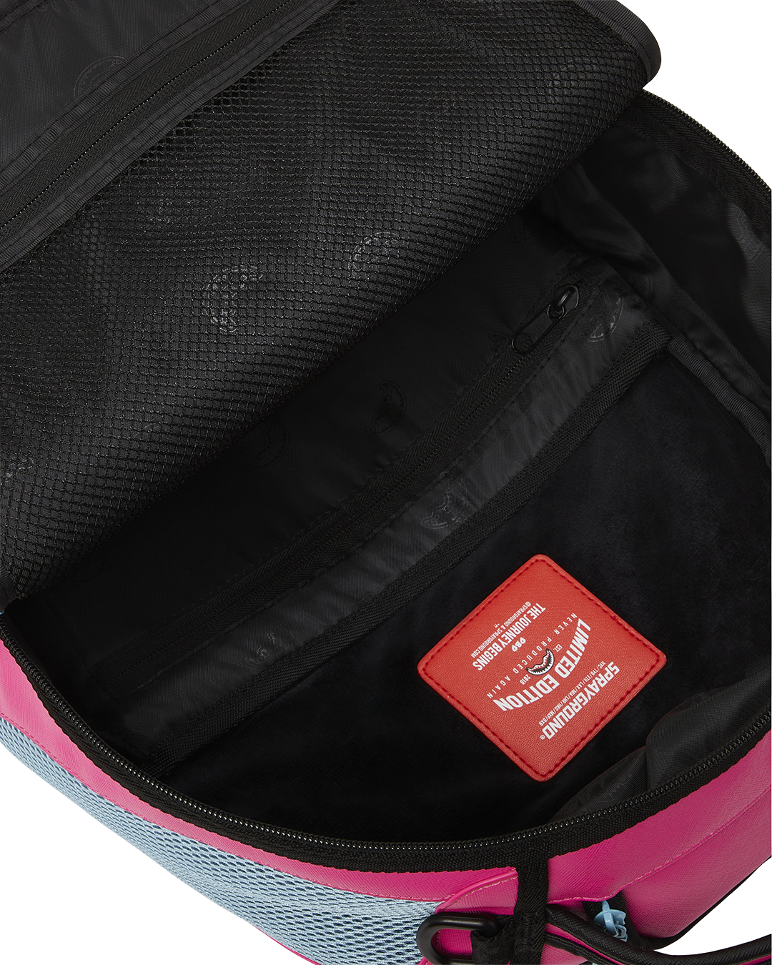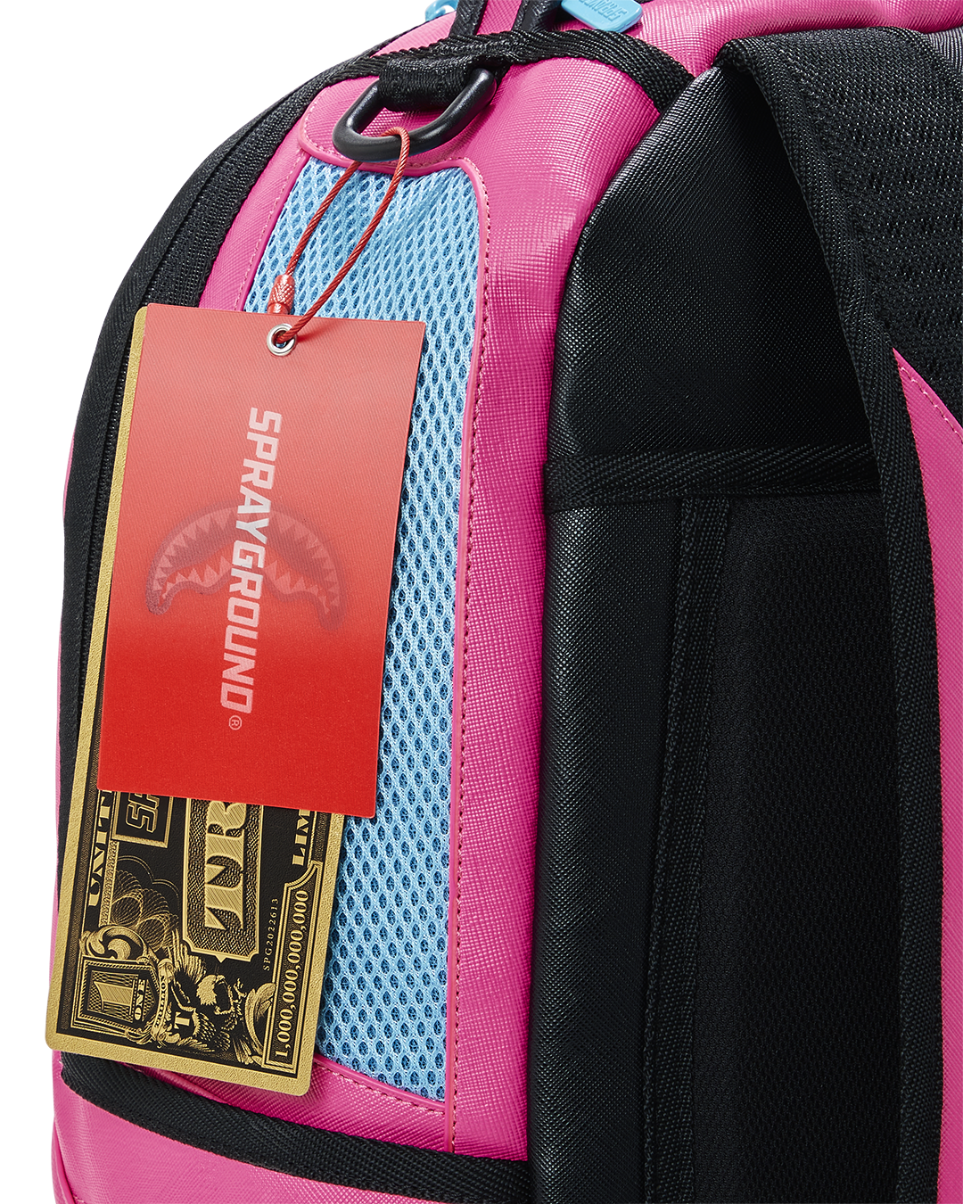 Dimensions: 18″ x 6″ x 11.5″ ? Front zipper pocket ? Side pockets ? Zippered Stash pocket ? Separate velour sunglass compartment ? Ergonomic mesh back padding ? Adjustable Straps for custom sizing ? Gold zippers with metal hardware ? Metal “Sprayground Authentic” badge ? Slide through back sleeve connects to carry on luggage to free your hands