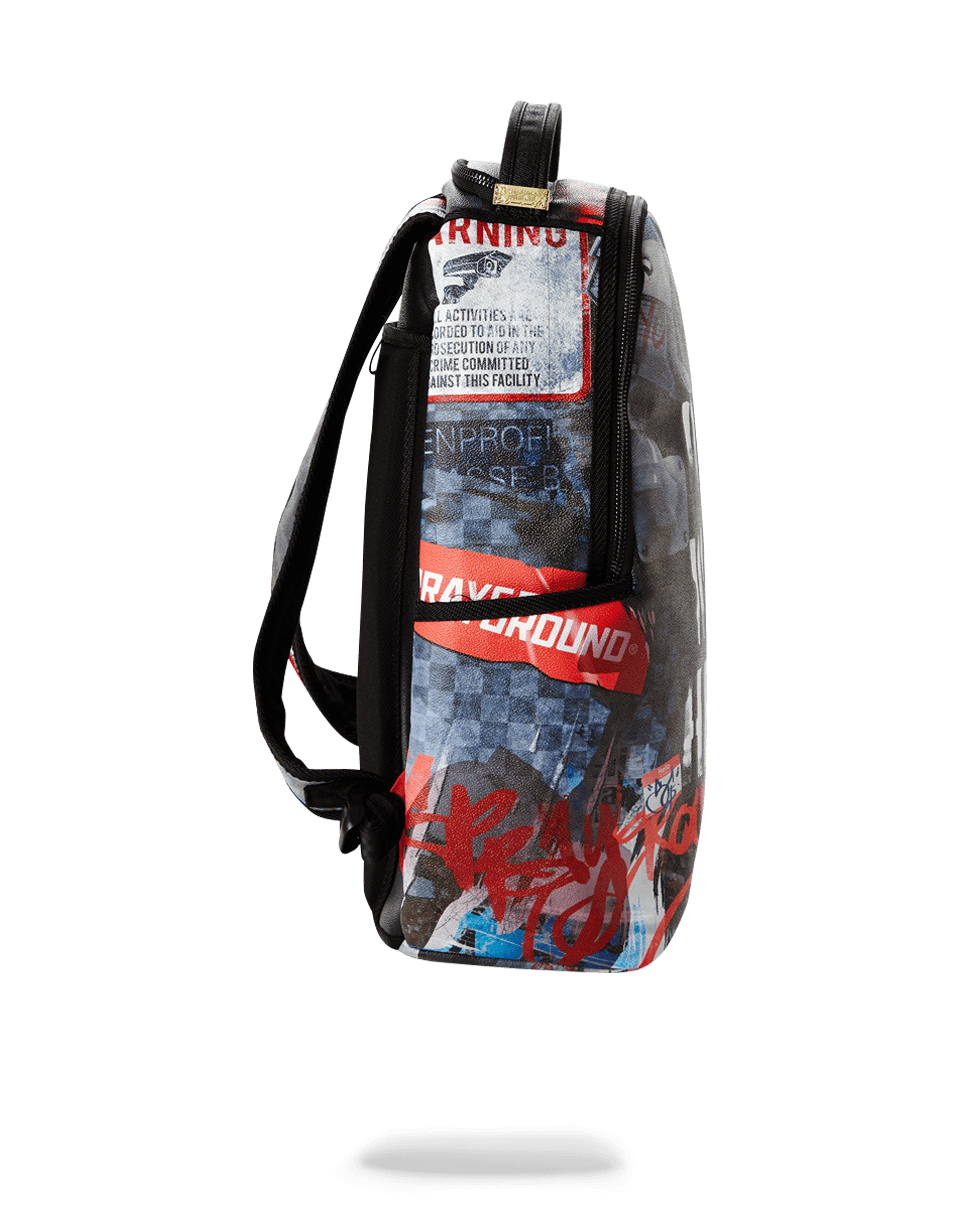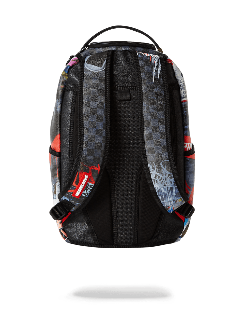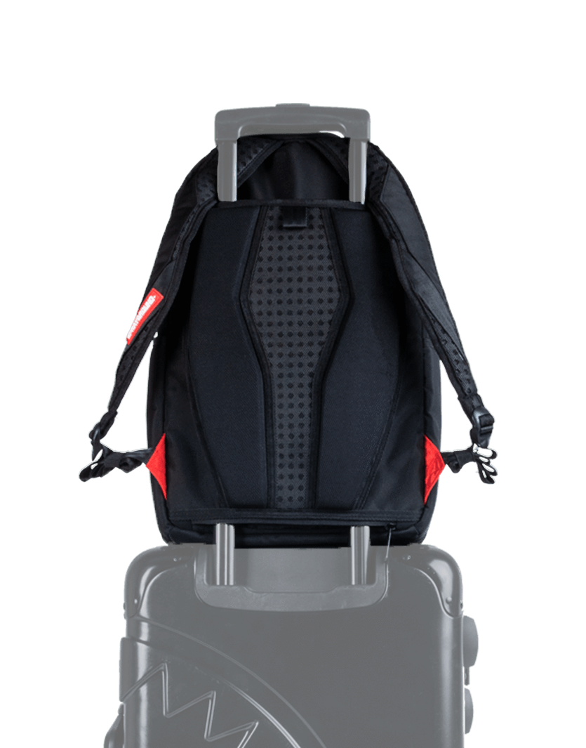 Dimensions: 18″ x 6″ x 11.5″ ?Vegan Leather??Front zipper pocket ? Side pockets ? Zippered Stash pocket ? Ergonomic mesh back padding ? Adjustable Straps for custom sizing ? Nylon Zippers with Metal Hardware ??Rubber?”Sprayground Authentic” badge ? Slide through back sleeve connects to Carry on luggage to free your hands