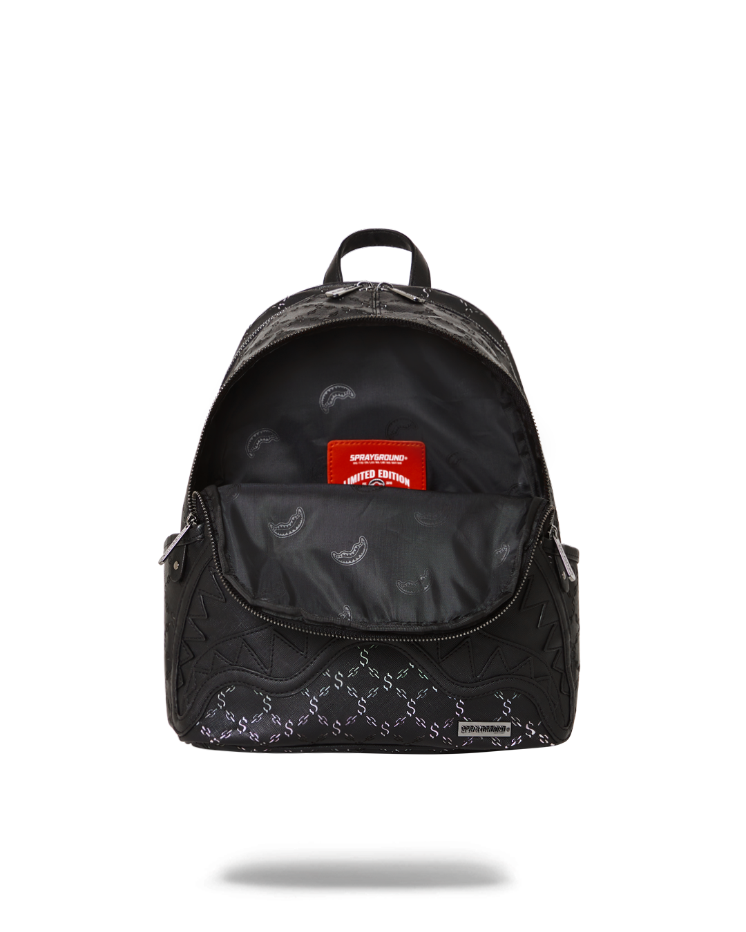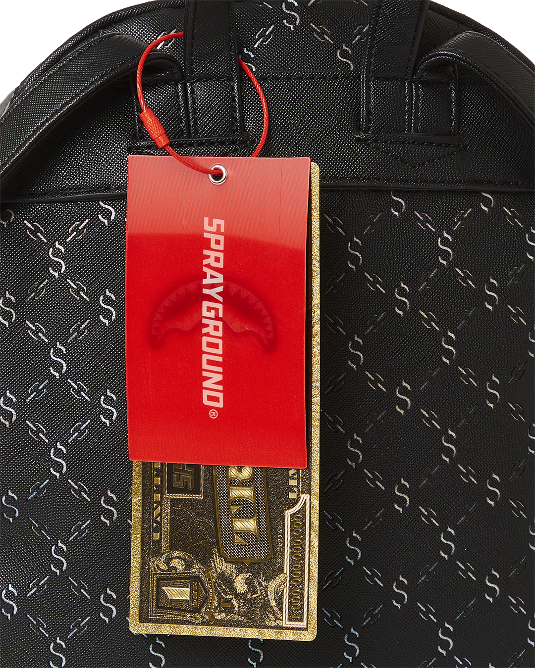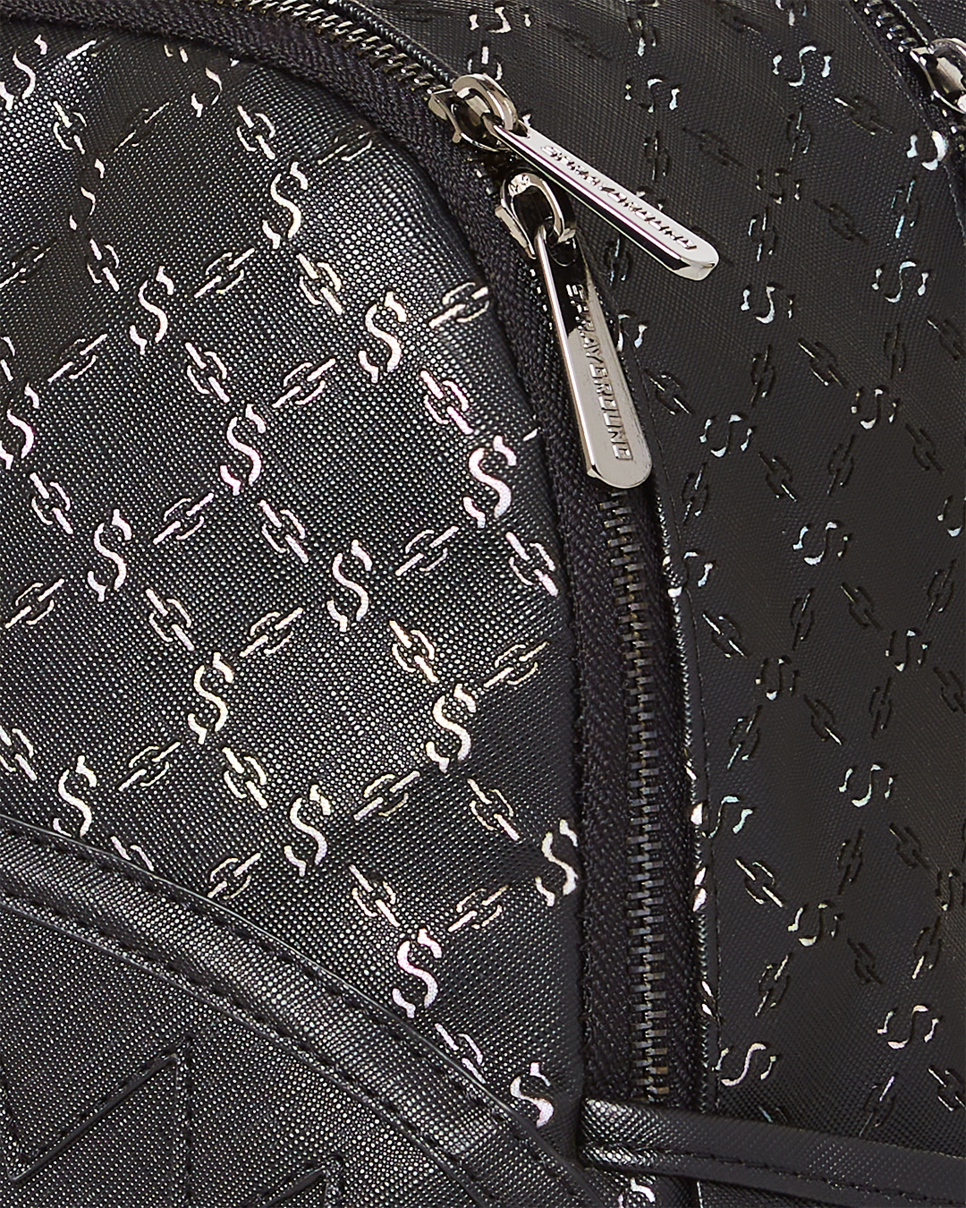 100% PVC with exclusive laser cut money logo pattern applied over metallic iridescent ?fabric to give a touch of shimmer to the fabric