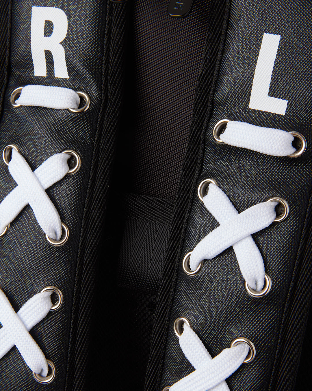 Dimensions: 18″ x 6″ x 11.5″ ? Front zipper pocket ? Side pockets ? Zippered Stash pocket ? Separate velour sunglass compartment ? Ergonomic mesh back padding ? Adjustable Straps for custom sizing ? Black zippers with metal hardware ? Metal “Sprayground Authentic” badge ? Slide through back sleeve connects to carry-on luggage to free your hands