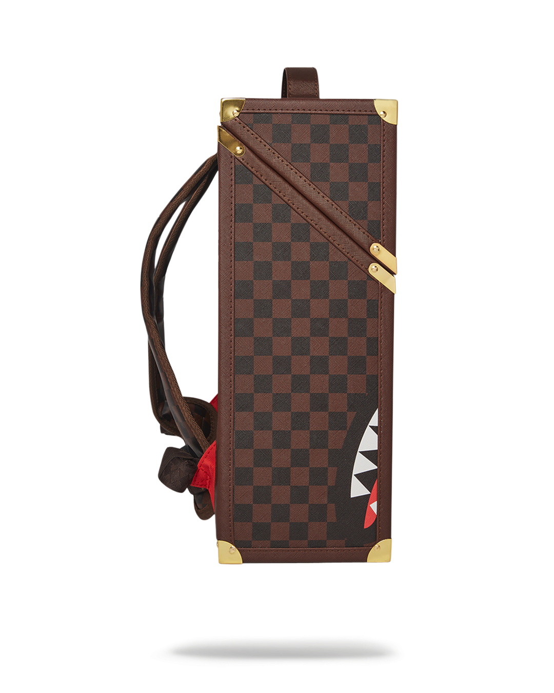 This unique Backpack is an instant classic. Drawing inspiration from a boxy shaped backpack that travelers and hikers used to use as one of the earlier designs of backpacks in the early 1900*s. Reinforcing it with a wooden frame and checkered shark pattern and luxe interior design for the modern adventurer. I call it the CHATURANGA SHARK to pay homage to the first ever board game that featured a CHESS PATTERN invented in India called Chaturanga Board Game..which would evolve into the CHECKERED PATTERN we all love and know in Fashion.