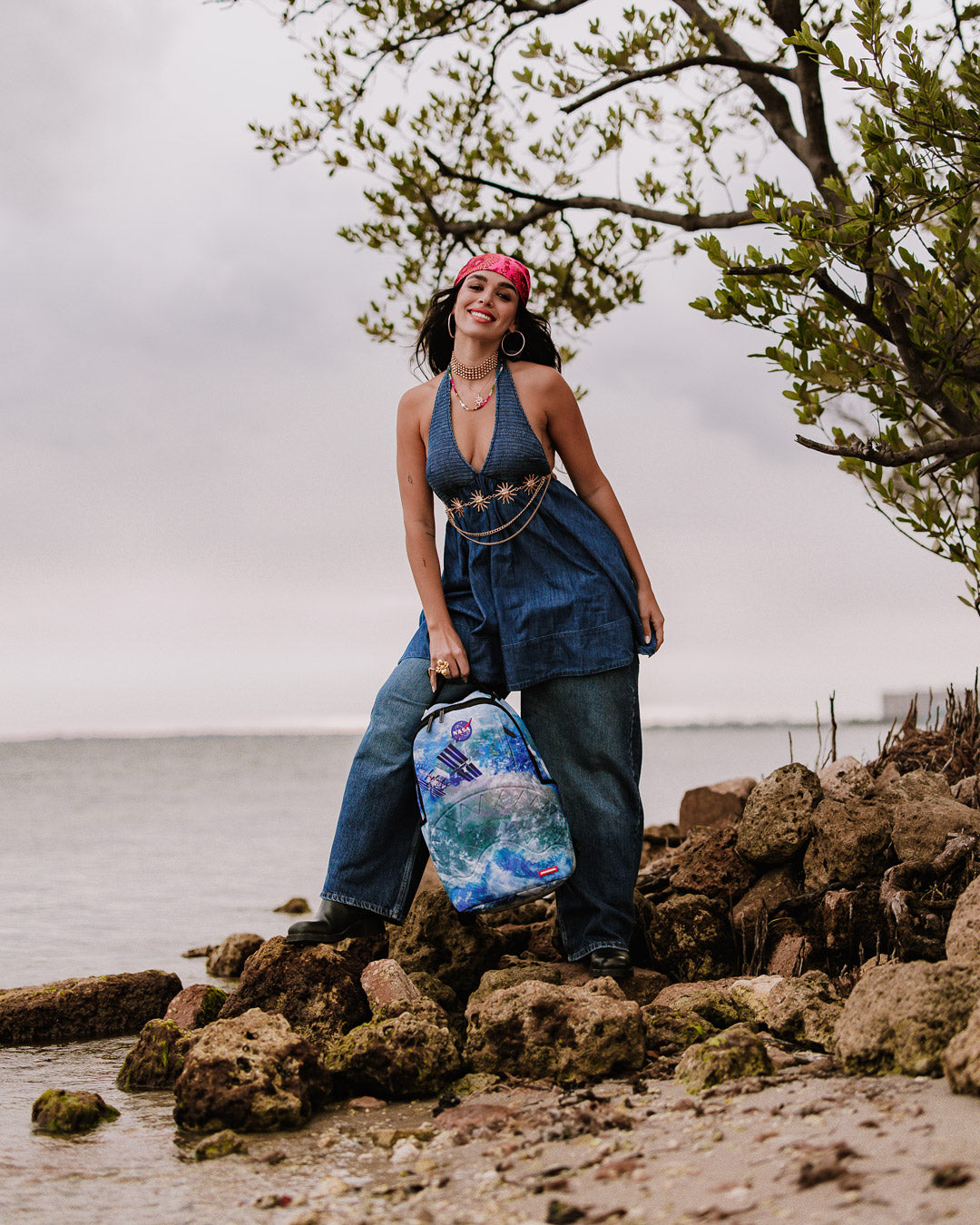 Dimensions: 18″ x 6″ x 11.5″ ? Front zipper pocket ? Side pockets ? Zippered Stash pocket ? Separate velour sunglass compartment ? Ergonomic mesh back padding ? Adjustable Straps for custom sizing ? Gold zippers with metal hardware ? Metal “Sprayground Authentic” badge ? Slide through back sleeve connects to carry-on luggage to free your hands